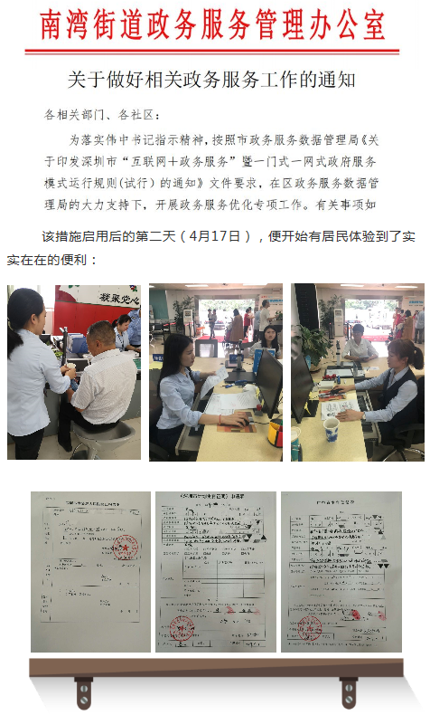 上图来源于深圳市行政服务大厅公众号:南湾街道推行“一枚公章管审批”,居民办事省时省力更省心!