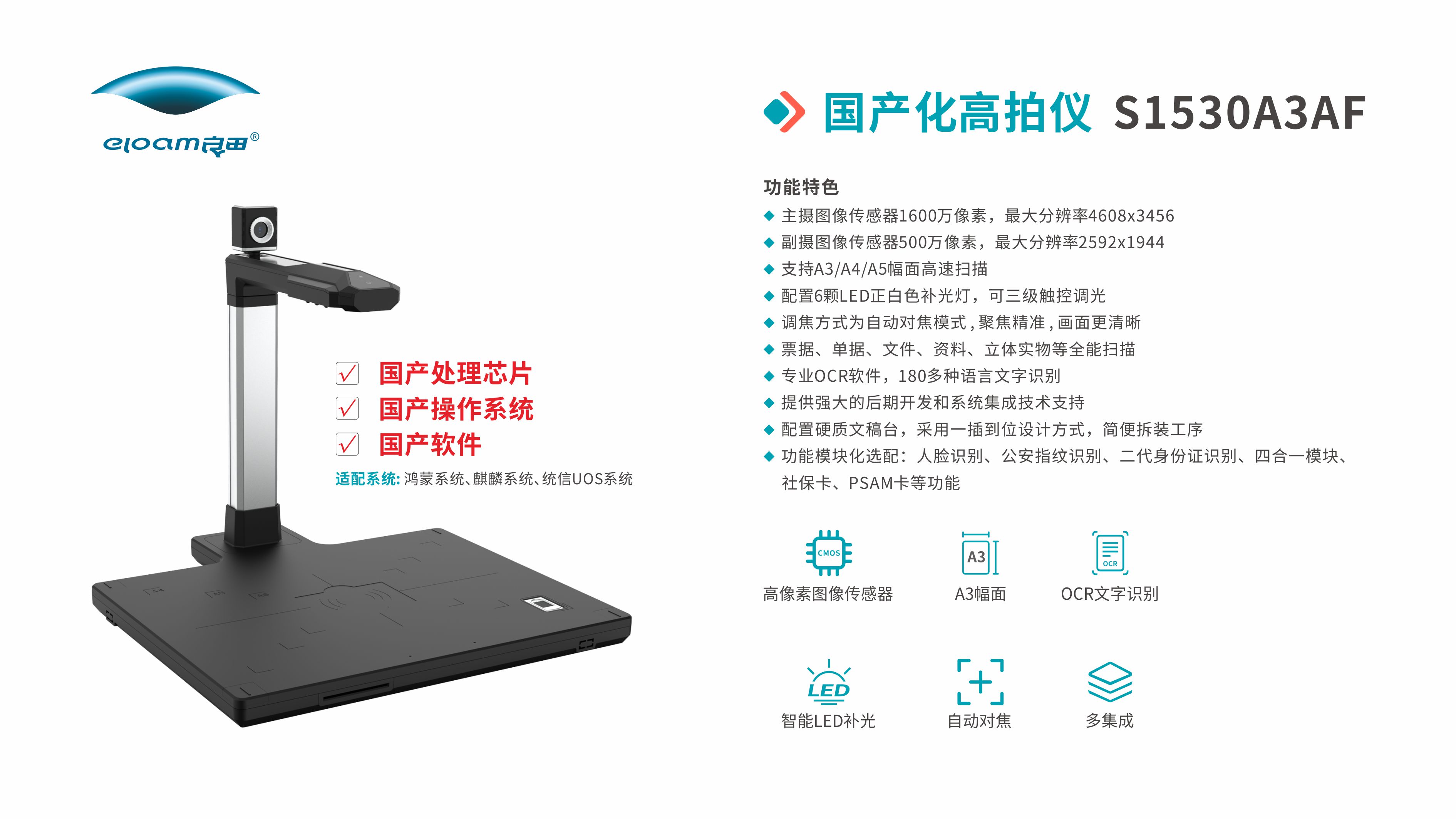 良田高拍仪采用国产化硬件平台、国产化CPU,支持HarmonyOS 5操作系统,可集成身份证识别、指纹采集、人证核验、条码二维码识读、文件拍摄、实物拍摄等功能,为政务、公检法司、金融、企事业单位等领域提供数智化解决方案。