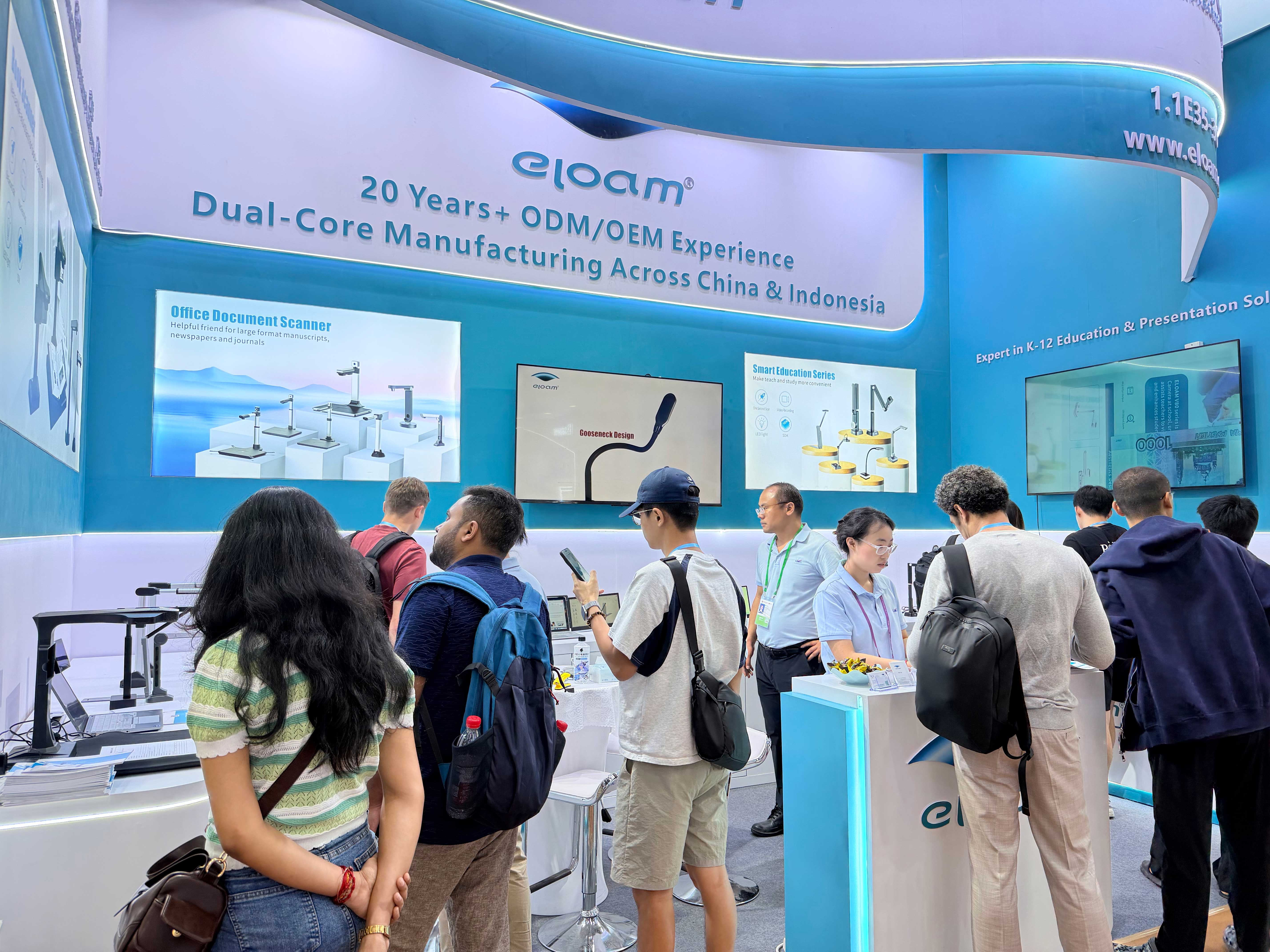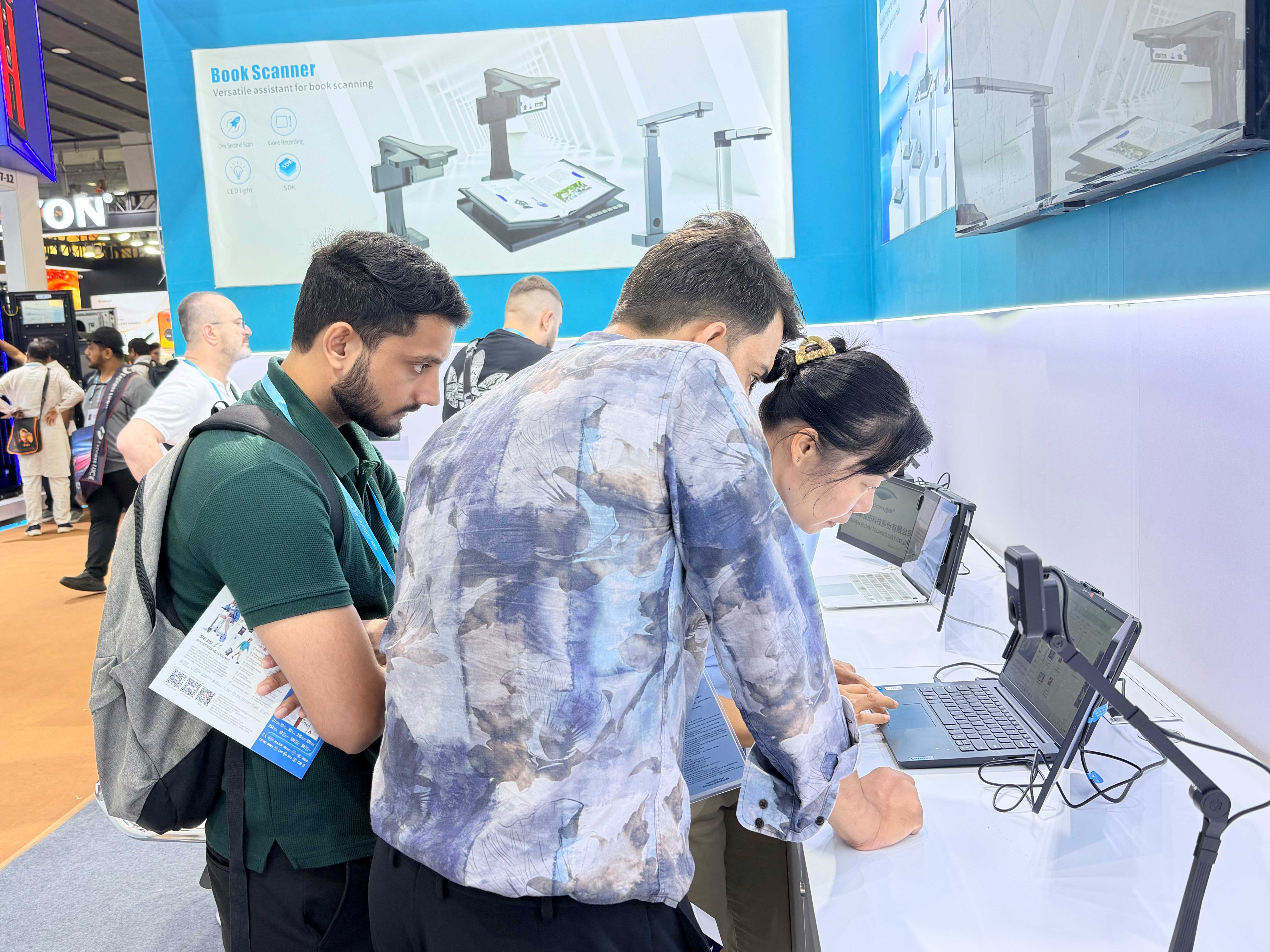折叠便携,高清还原每一处细节:折叠便携式视频展台V1200A3AF聚焦教学及办公场景中的真实痛点,以科技重塑教学体验,设备集创新科技与人性化设计于一体,贴心实用、高效便捷,将为教育培训、书法美术、会议直播等领域带来全新视拍体验,极致便携的设计与强大的功能,使其成为现场采购商关注的焦点,并当场促成多笔订单。