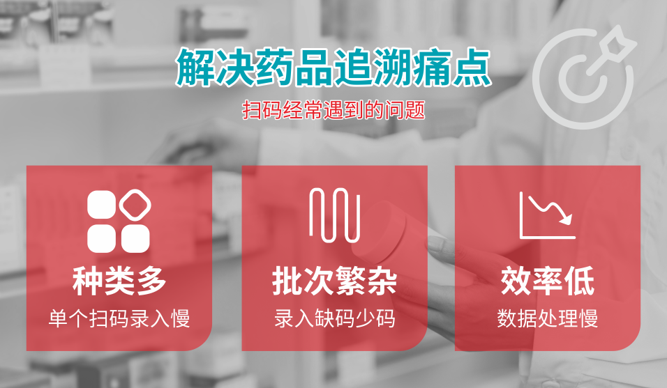 当下,药品追溯码扫码采集录入的环节存在多种痛点,主要集中在需要操作人员不断操作进行录入,出现条码扫描遗漏、重复录入、扫描错误等问题,耗费时间影响工作流程的顺畅性,降低工作效率。