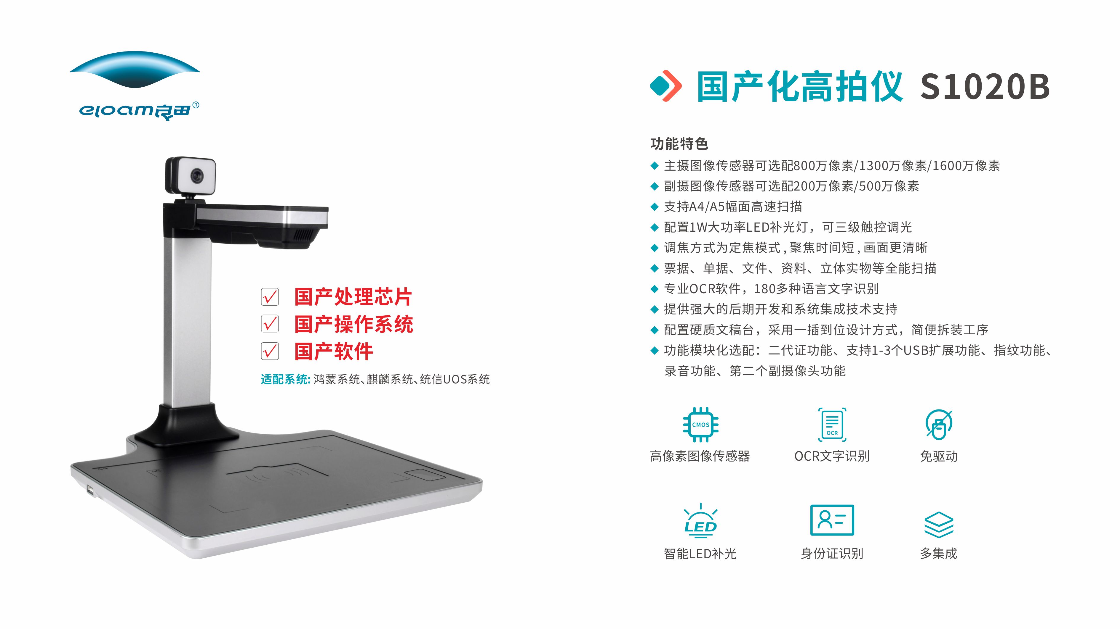 良田高拍仪采用国产化硬件平台、国产化CPU,支持HarmonyOS 5操作系统,可集成身份证识别、指纹采集、人证核验、条码二维码识读、文件拍摄、实物拍摄等功能,为政务、公检法司、金融、企事业单位等领域提供数智化解决方案。