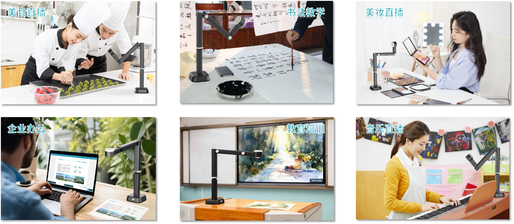 整机采用可折叠便携式设计,小巧轻便、收纳方便、不占桌面空间,根据不同场景设定不同角度,让拍摄画面更丰富,随时随地进行专业拍摄,以精巧设计满足现代教学与移动办公需求,适用于多种动态教学场景。