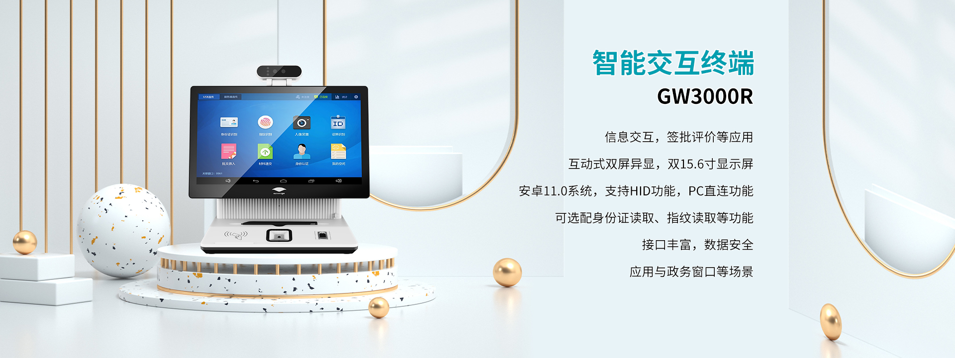 智能交互终端GW3000R,融合多种技术,具备高度集成性:柜面整洁、无纸化智能化办公、便捷易用、友好互动、智能高效、多功能集成等。
