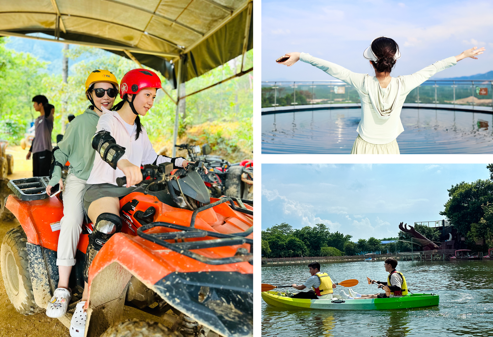 下午到达牛鱼嘴景区,同事们携手前行,几人一组体验划船、皮划艇。游览在清澈见底的水湖中,体验自然欣赏湖光山色,贴近自然,享受自然,体验自然;与此同时还可以选择山地越野车,穿越丛林和山地,感受速度与激情的欢乐,释放自己内心的激动,体验极速飞驰的快感,非常潮酷。大家亦静亦动,自由休闲,玩得乐此不疲,酣畅淋漓。